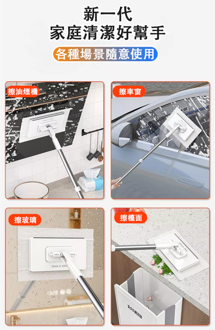 2分鐘前【台灣爆紅款 現貨秒發】3秒快速換布,免手洗超衛生,360度旋轉拖頭,深入縫隙無死角,磁磚、木地板都適用! - 【嘗鮮套餐】2入組-NT$980