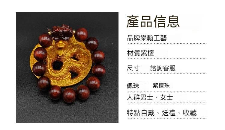 7分鐘前天然印度小葉紫檀貔貅手鍊 - 1入組- NT$999